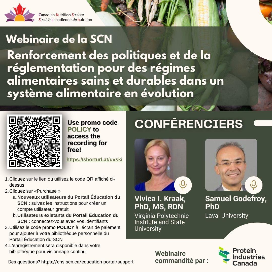 Ce webinaire explore les opportunités et les défis pour les gouvernements de renforcer la cohérence des politiques et la surveillance réglementaire afin d'encourager les entreprises à développer et commercialiser de nouveaux produits alimentaires et boissons qui favorisent des habitudes alimentaires saines et durables, contribuant ainsi à la santé des individus et de la planète. Les intervenants examinent des études de cas de pays ayant récemment mis à jour leurs recommandations alimentaires nationales incluant des habitudes alimentaires végétales, ainsi que les politiques et la surveillance réglementaire nécessaires pour garantir la sécurité et la salubrité des nouvelles protéines (végétales, animales et hybrides) afin de répondre aux besoins humains tout en soutenant les objectifs de durabilité environnementale et d'atténuation du changement climatique.