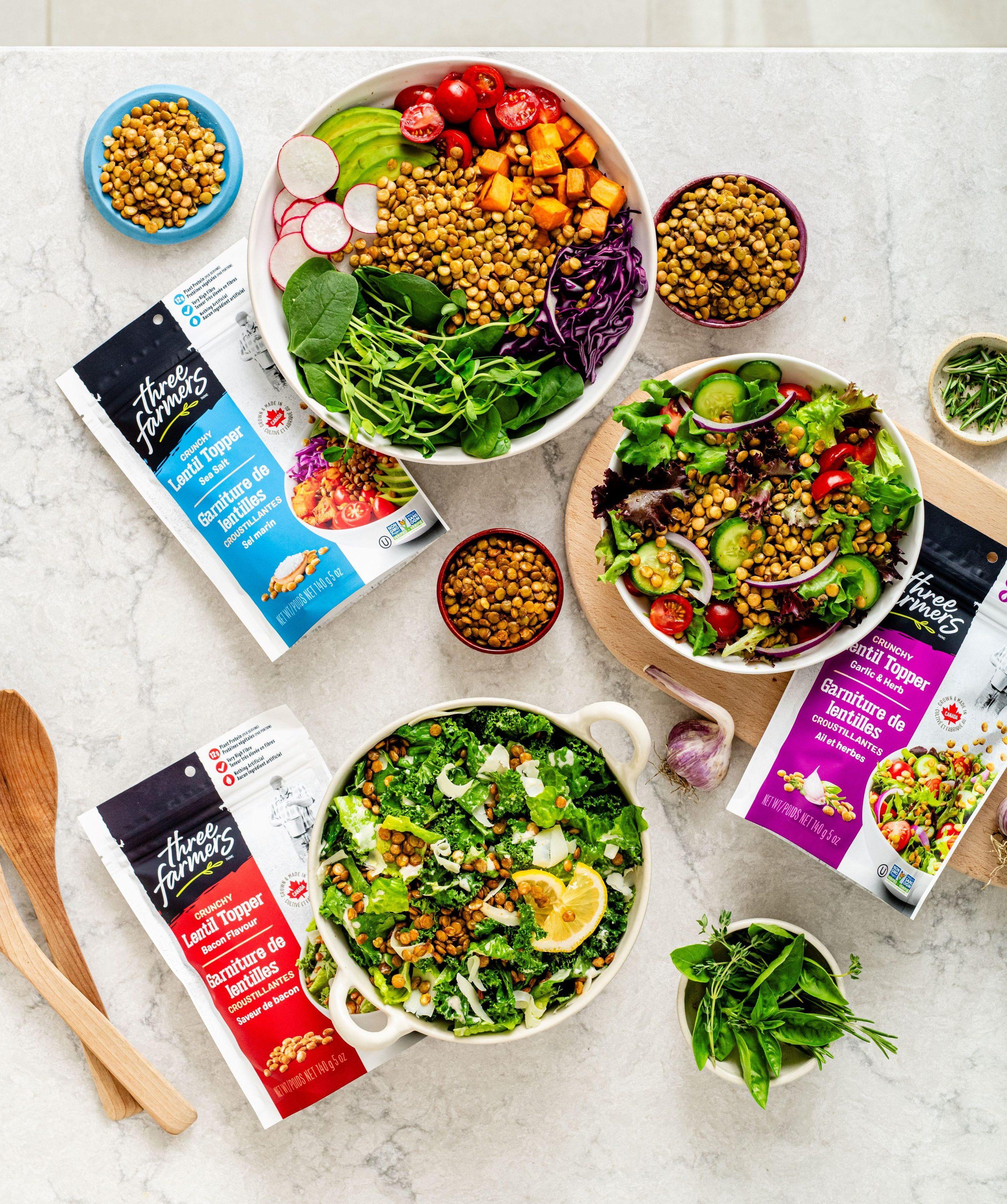 Depuis plus de 10 ans, Three Farmers fournit aux familles un approvisionnement constant en collations saines et riches en protéines. Depuis 2011, l'entreprise familiale est passée d'une gamme de paquets de collations aux lentilles rôties à une sélection de collations à emporter contenant des ingrédients cultivés au Canada, comme les pois chiches, les fèves et les très populaires lentilles.